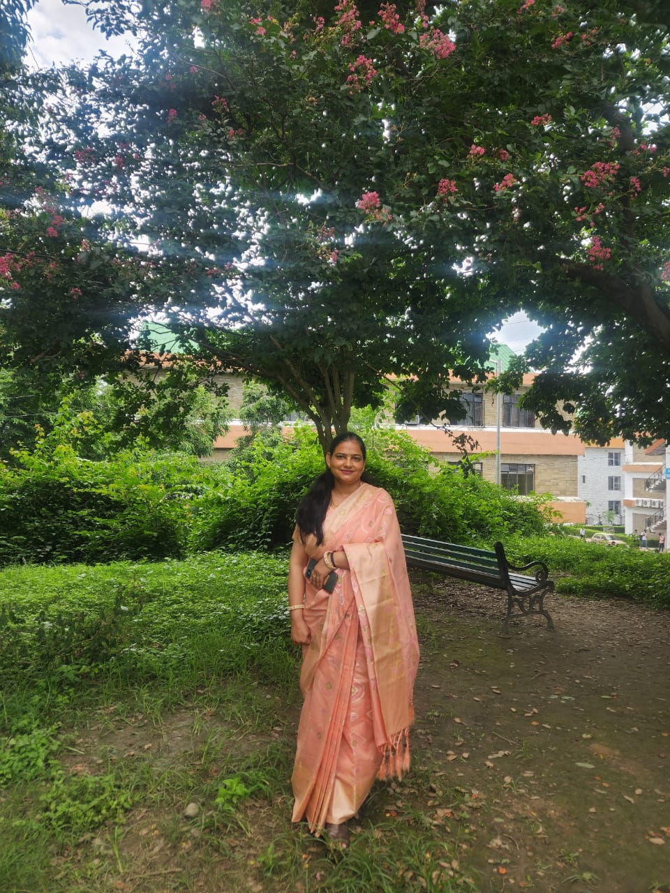 Banarasi kora organza saree in caramel orange color with multicolor abstract motifs and zari border