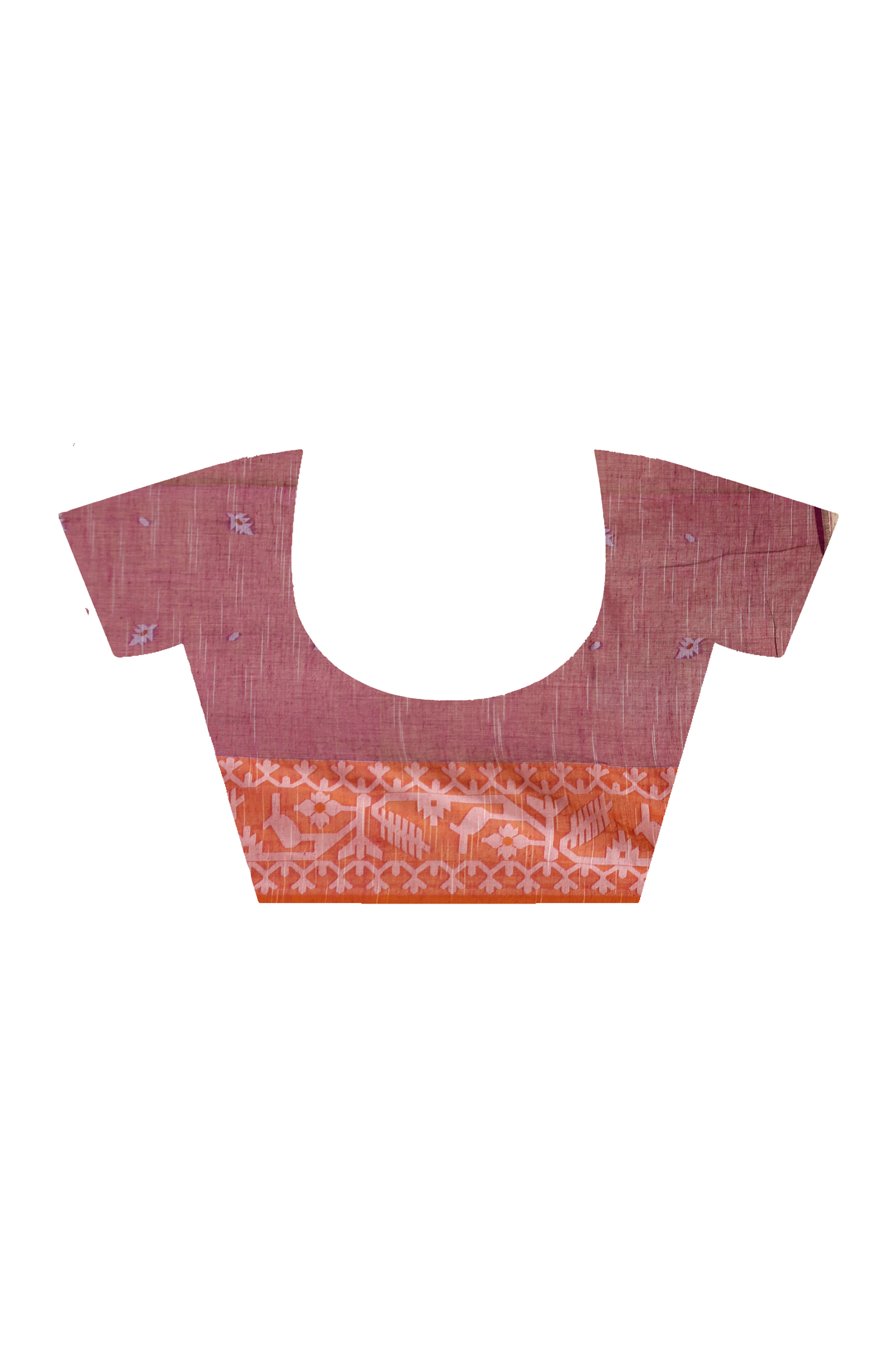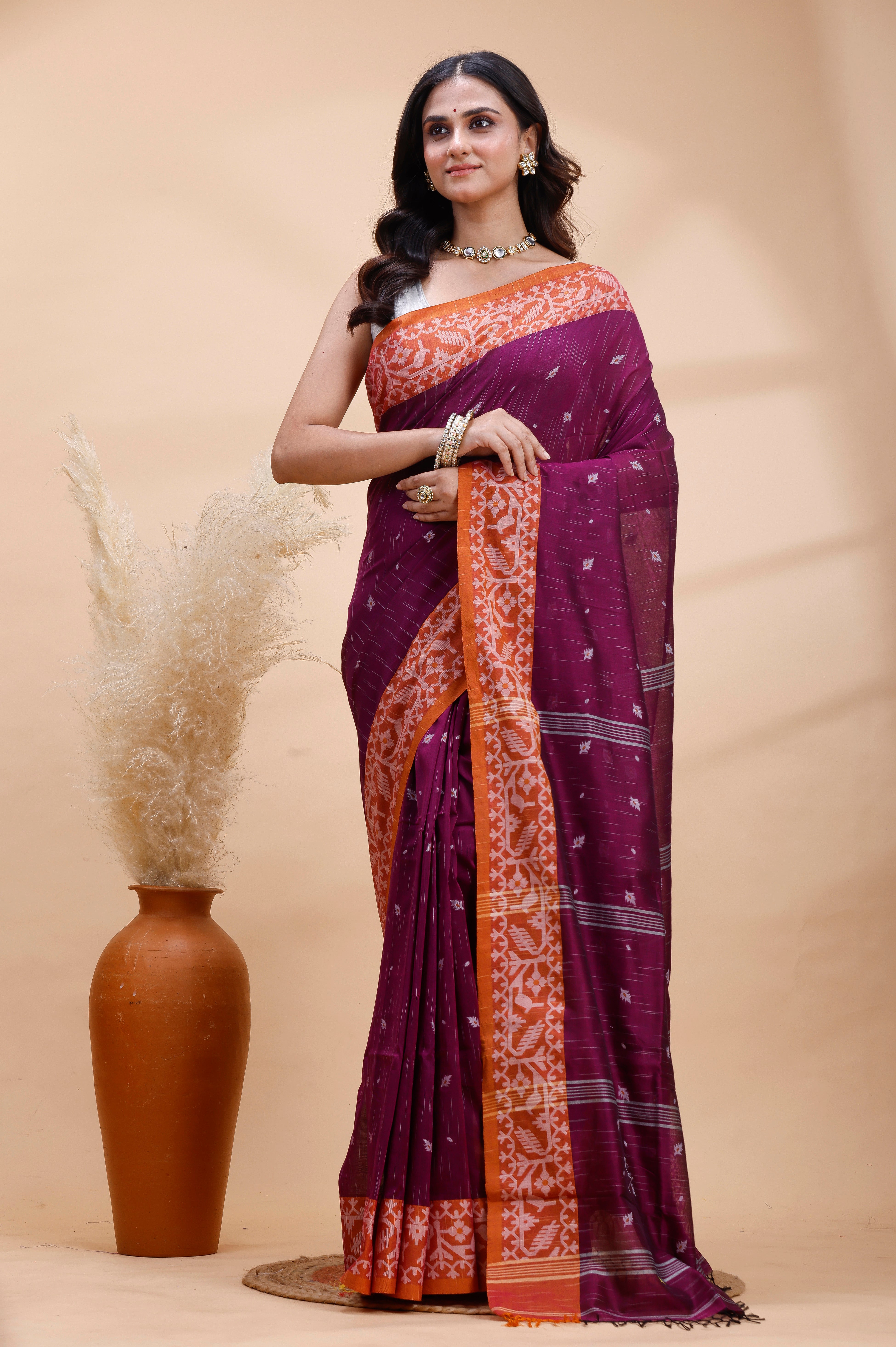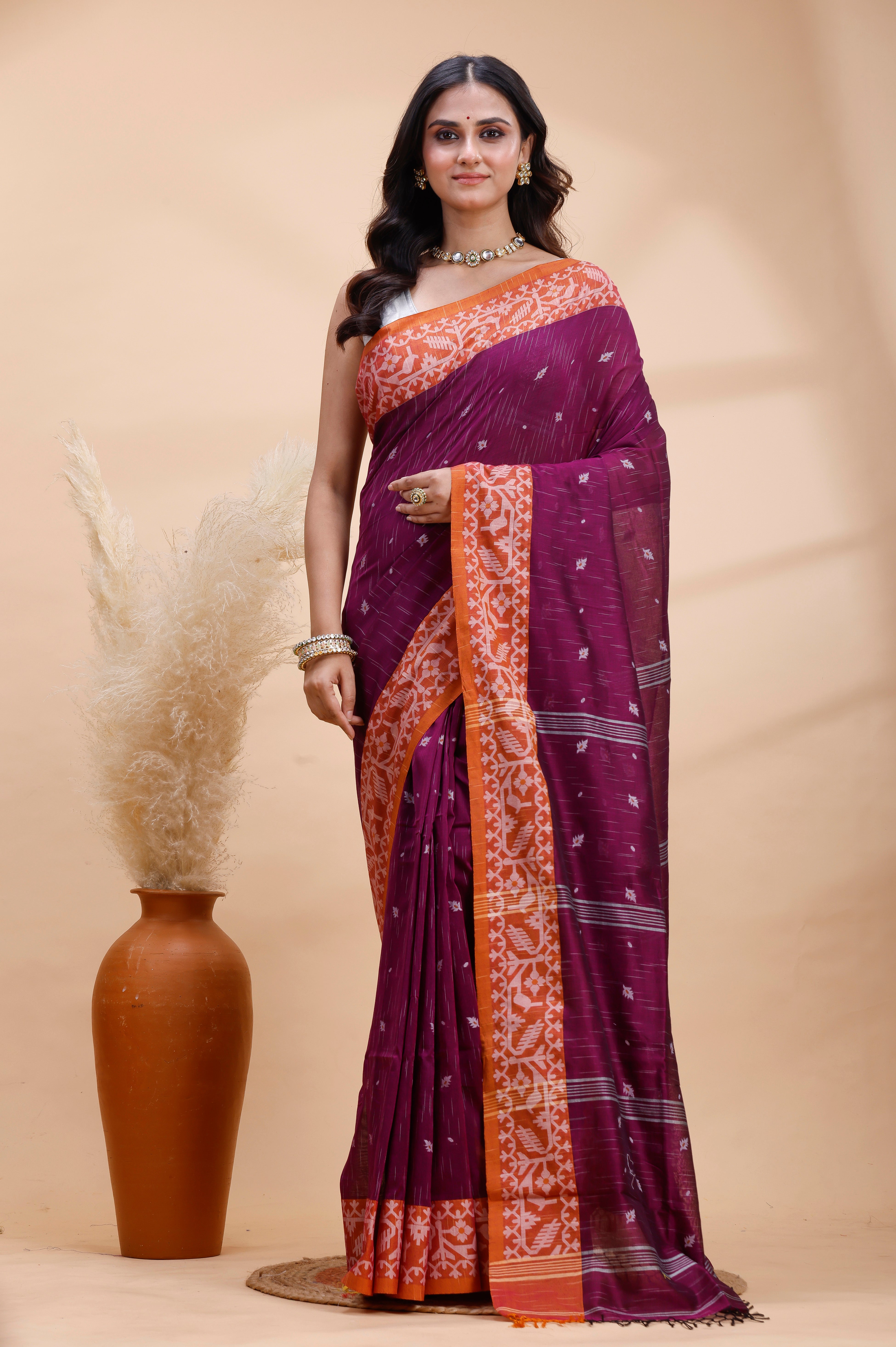 MAGENTA HANDLOOM COTTON SAREE WITH RUST HERITAGE BORDER